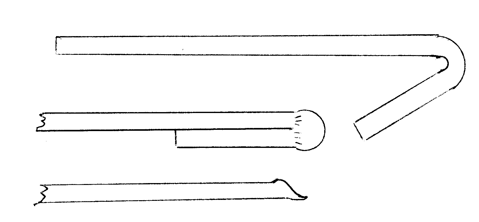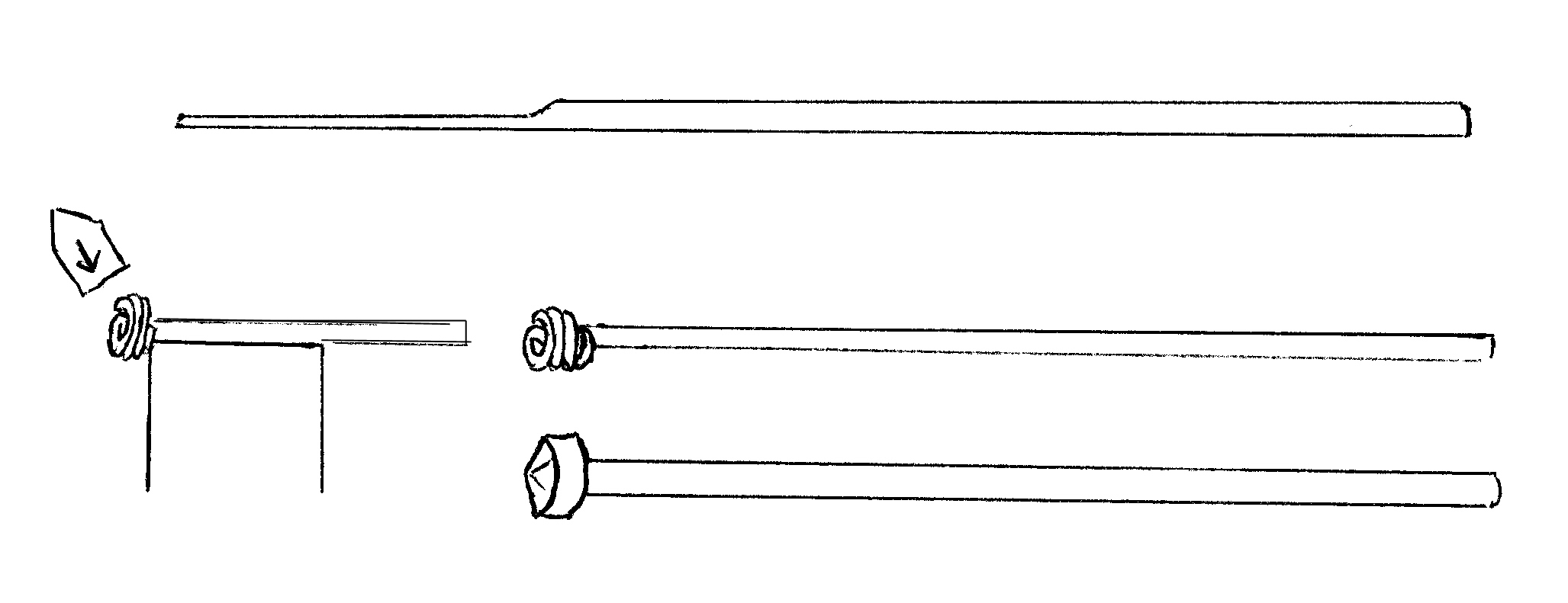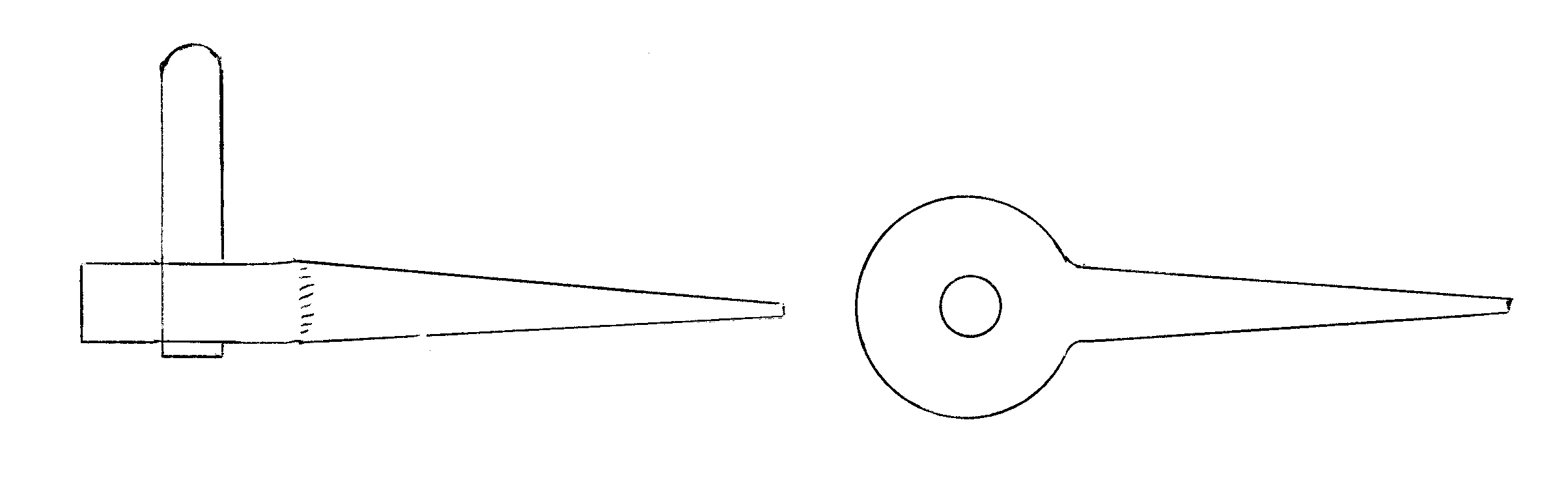 The next project was a poker end demonstrating an interesting forge weld. The end is made by folding one piece of stock back on itself and scarfing the end. The other piece is upset and scarfed and then welded to the first piece. Excess stock was then cut off and the ends forged to shape. This is stronger than looping the stock and welding as it gives more material and the weld is in a different plane to the stresses.