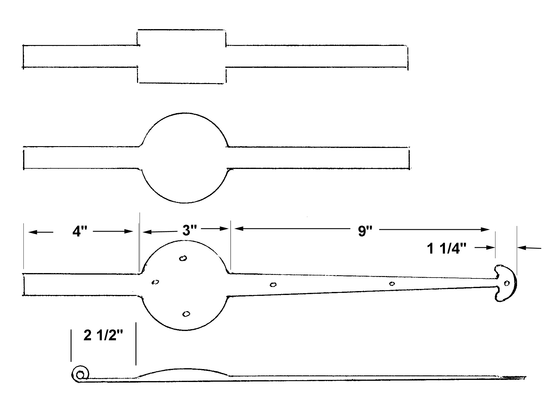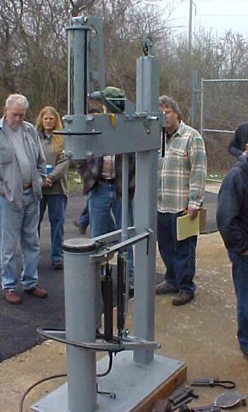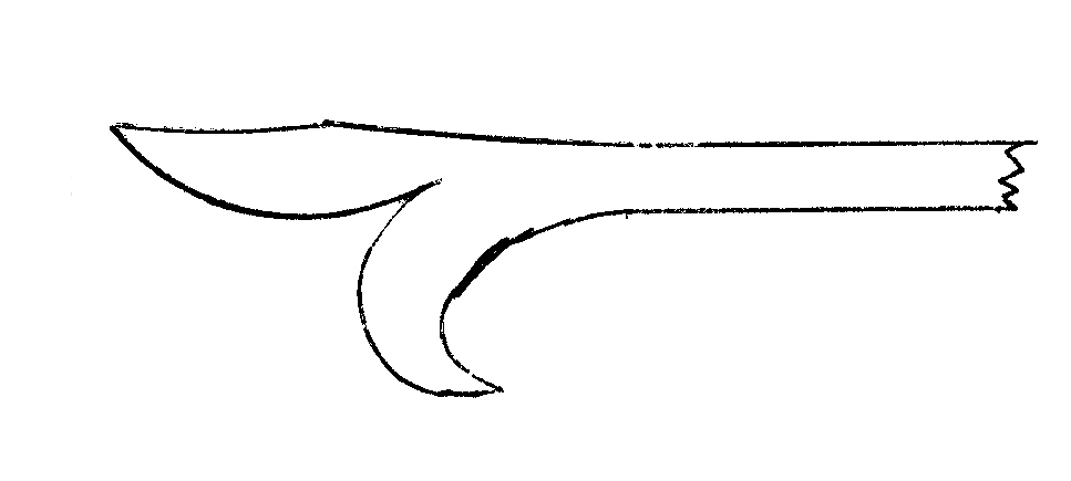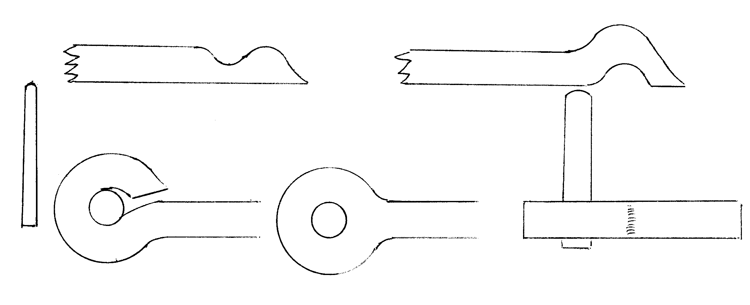 The next project was a poker end demonstrating an interesting forge weld. The end is made by folding one piece of stock back on itself and scarfing the end. The other piece is upset and scarfed and then welded to the first piece. Excess stock was then cut off and the ends forged to shape. This is stronger than looping the stock and welding as it gives more material and the weld is in a different plane to the stresses.